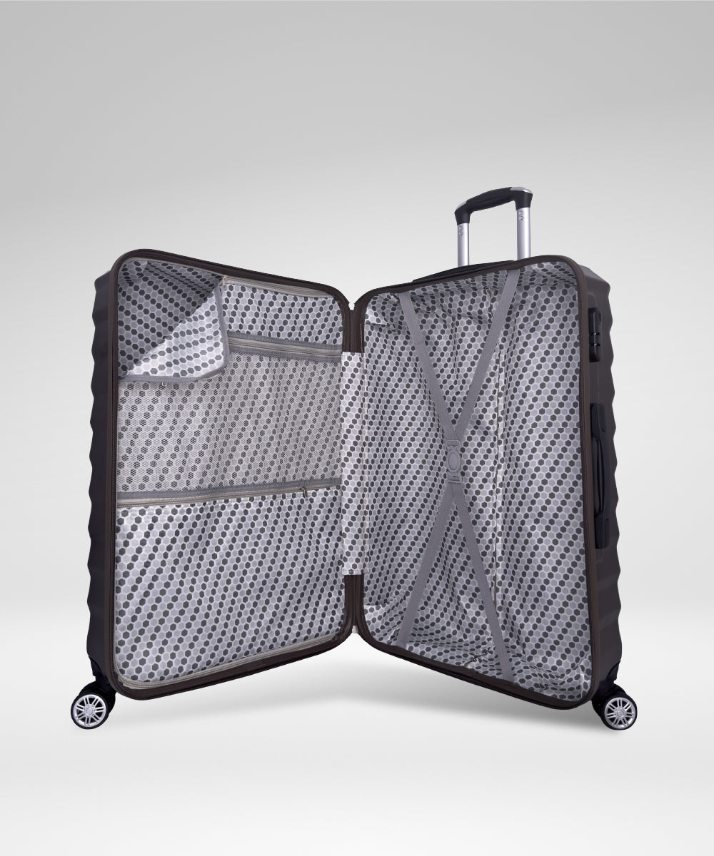URBANlite Tron 2.0: Crafted from durable ABS material, this luggage boasts a multi-stage telescopic handle and a reliable combination lock for security. Its fully-lined interior keeps belongings organized, while the embossed structure design adds extra protection. With comfortable handles and 8 multi-directional wheels, it ensures smooth and effortless travel.
