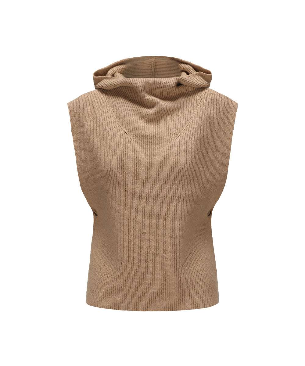 A Stylish Knitted Sweater With A Cozy Hood, Designed For Comfort And Warmth. The Soft Ribbed Fabric Combines Viscose, Polyester, And Nylon For A Perfect Blend Of Softness And Durability.
