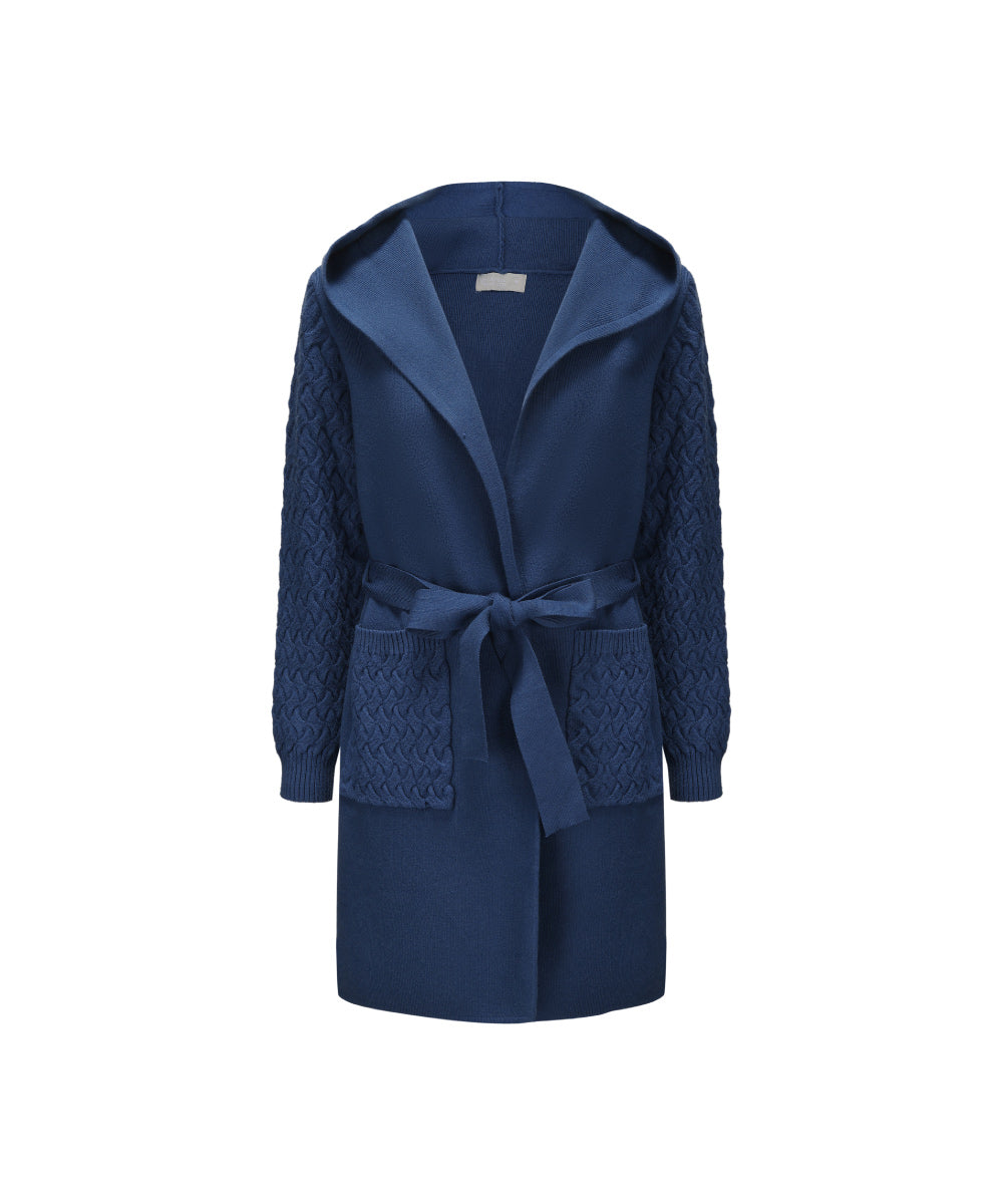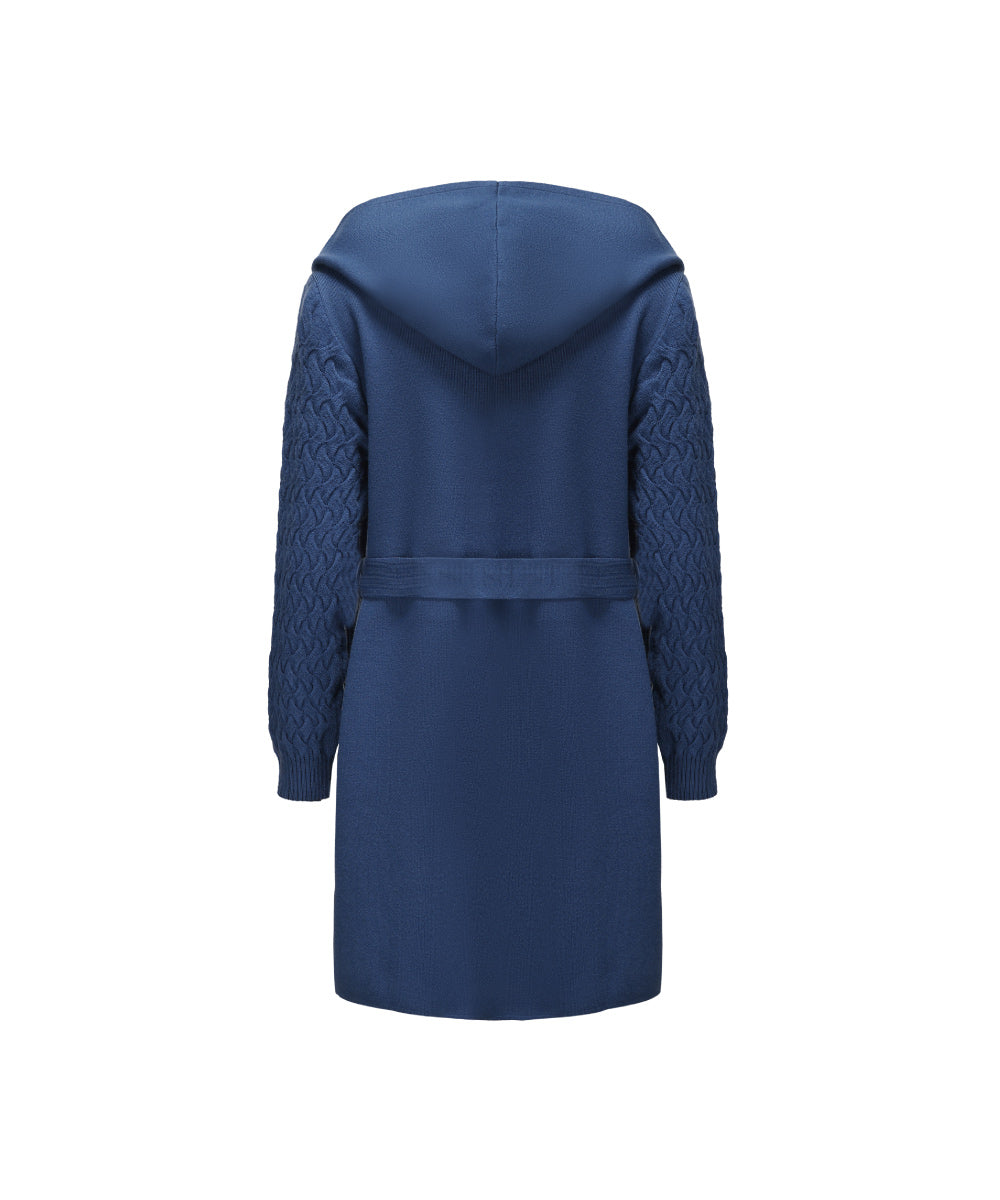 Soft, Cozy Knitted Cardigan With A Hoodie And Tie Waist. Perfect For Layering.